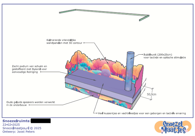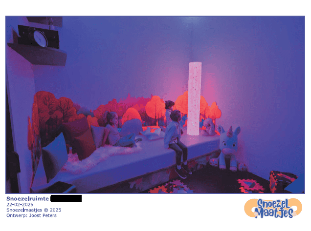 In principe is alles mogelijk. Samen bekijken we stap voor stap hoe uw ideale snoezelruimte eruit mag zien. Daarbij nemen we ieder detail serieus: van de kleuren en vormen tot de materialen en afwerking.