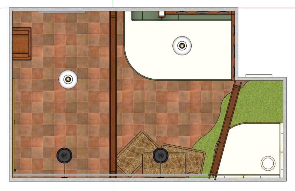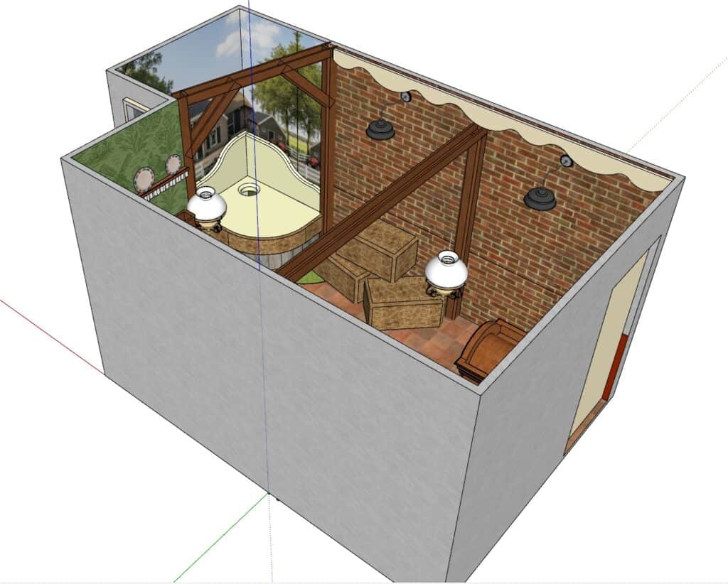 Begin ontwerp voor snoezelruimte met thema “terug naar het platteland” diverse keuzes in materalen. Maatvoering nog in het werk te bepalen